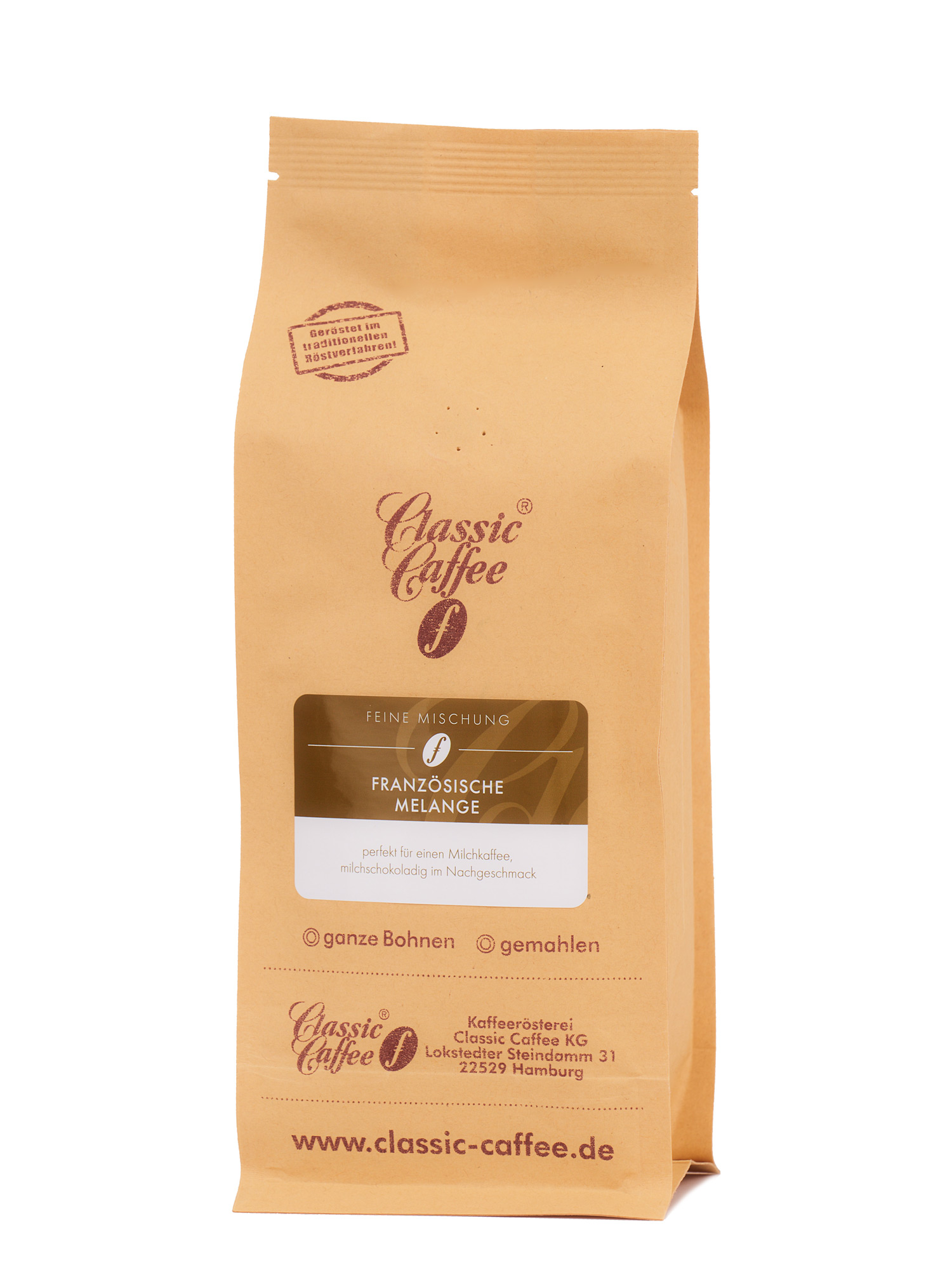 Diese Mischung aus Arabicabohnen und einem kleinem Teil Espresso entsteht – wie für die französische Kaffeetradition typisch – aus einem Teil Espressobohnen (besonders dunkel geröstet) und einem Teil hell gerösteter Bohnen. Die lange Röstung der Espressobohnen verleiht dem kräftigen Geschmack eine wunderbare Karamellnote. Die französische Melange lässt sich herrlich als Milchkaffee genießen. Empfohlene Zubereitungsart: french-press (grober Mahlgrad); Filter: mittlerer Mahlgrad.